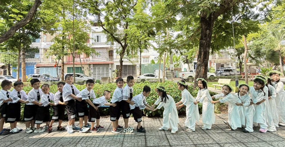 Dưới tán cây sân trường rì rào gió thổi, bên trang sách còn thơm mùi giấy mới, các con ngồi bên nhau – lặng lẽ mà thân thương. Những ánh mắt trong veo, những nụ cười tinh khôi, và cả bàn tay bé nhỏ khẽ đặt lên vai bạn… tất cả đều như muốn níu giữ từng giây phút cuối cùng của một thời ấu thơ rực rỡ.