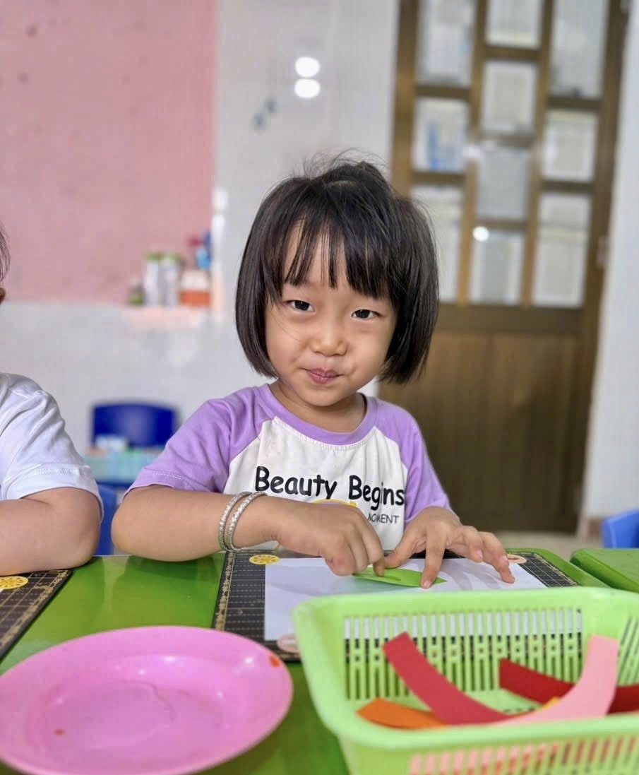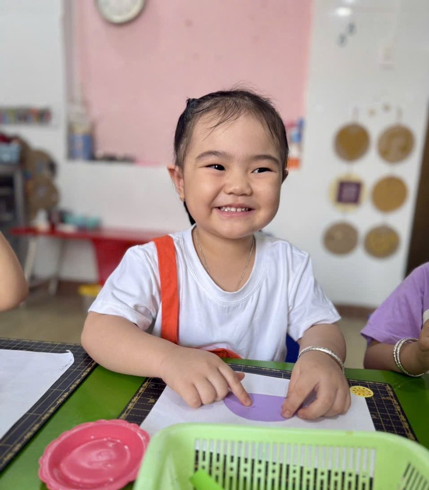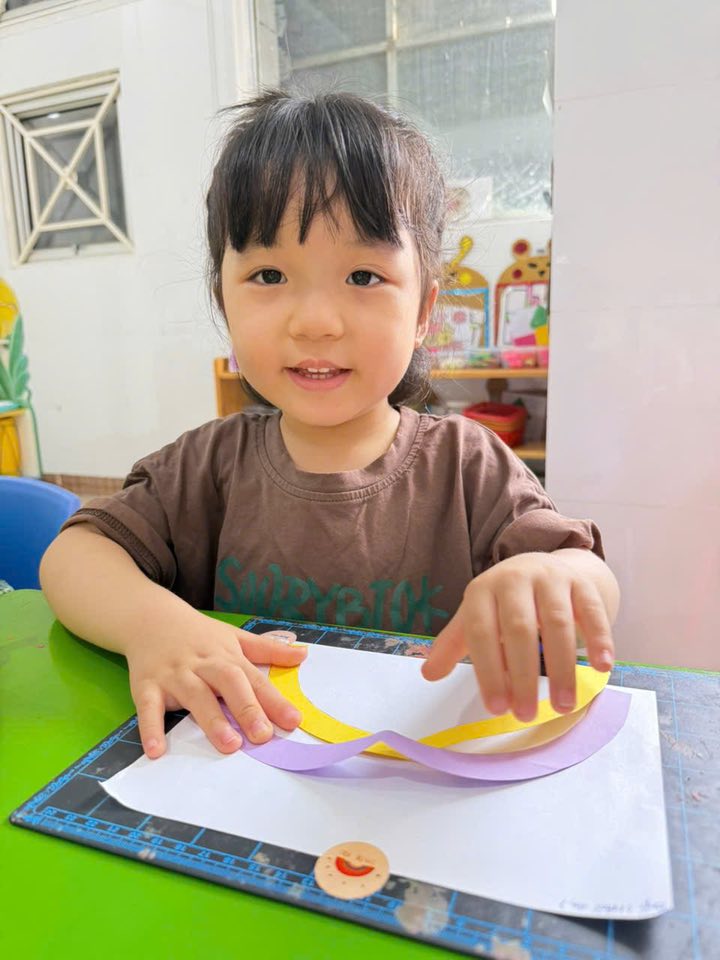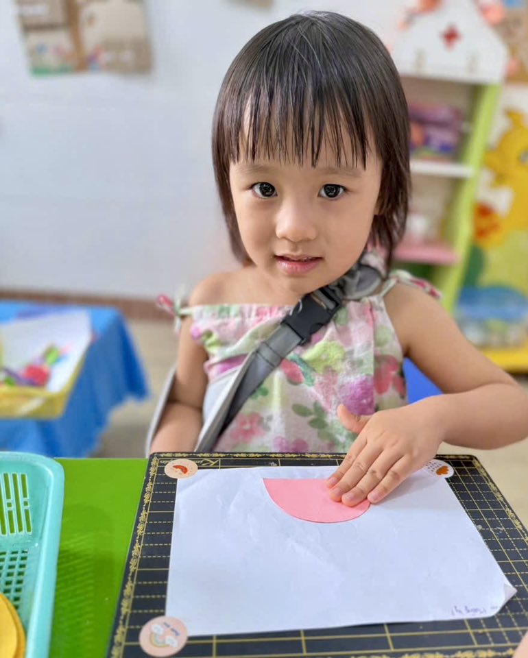 Từng mảnh giấy, từng vệt màu – là cả một thế giới đầy yêu thương mà bé đang dần khám phá.”