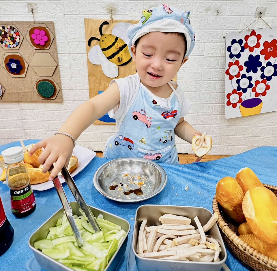 Lớp nhà trẻ – Bé tập làm nội trợ: Bánh mì kẹp chả ngon khó cưỡng